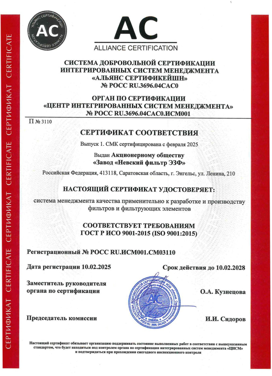 Сертификат соответствия Сертификат соответствия ISO 9001